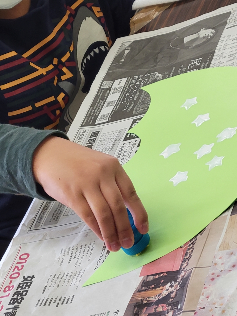 こんなチャンスは、使わなきゃ!とのことで…梅雨を前に、早めの窓飾りを工作しました。