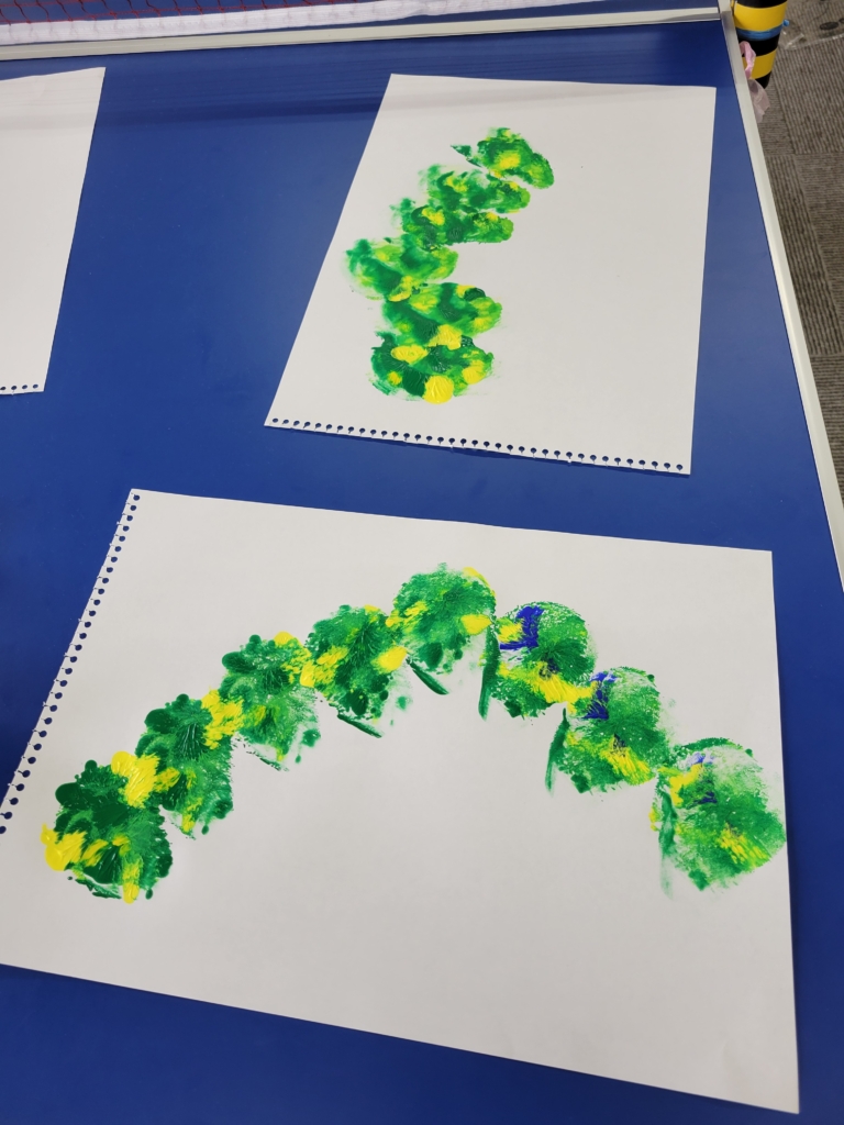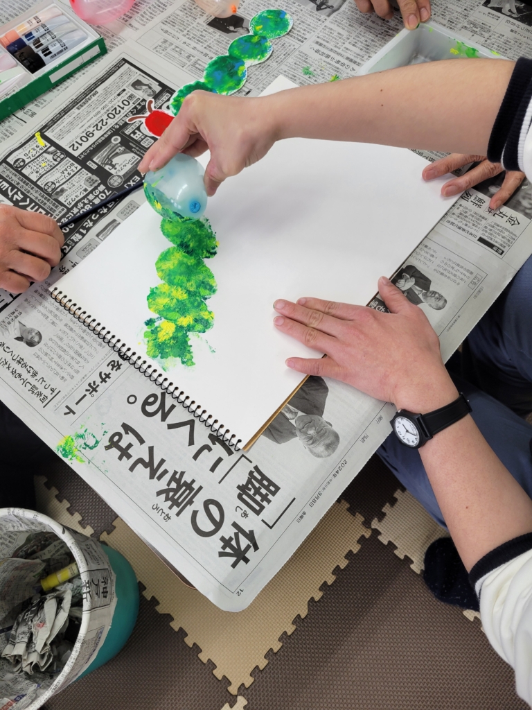 小さいふうせんを使って、ポンポンと押して身体を作りました。