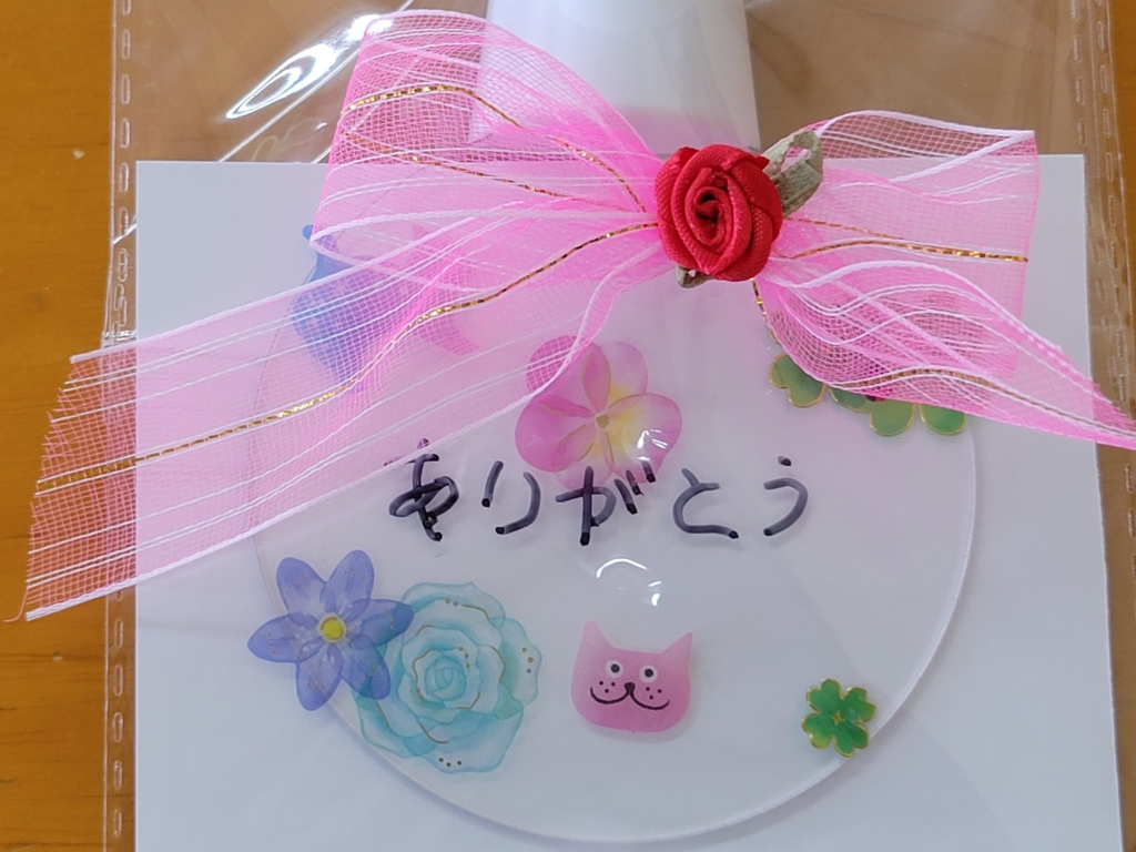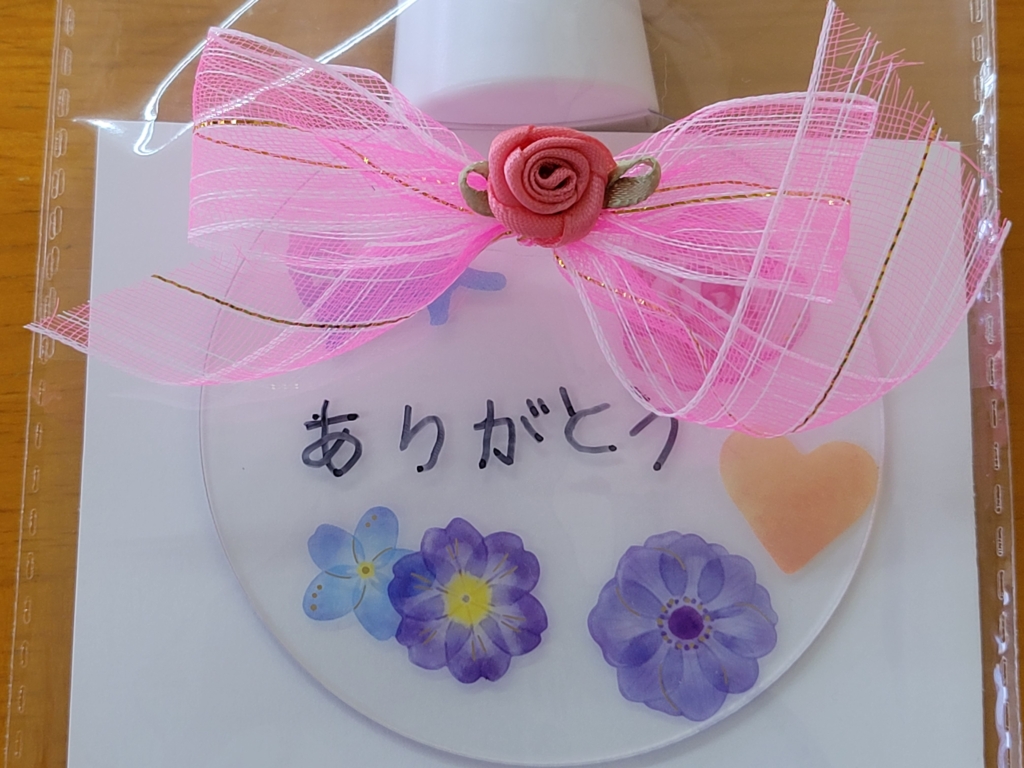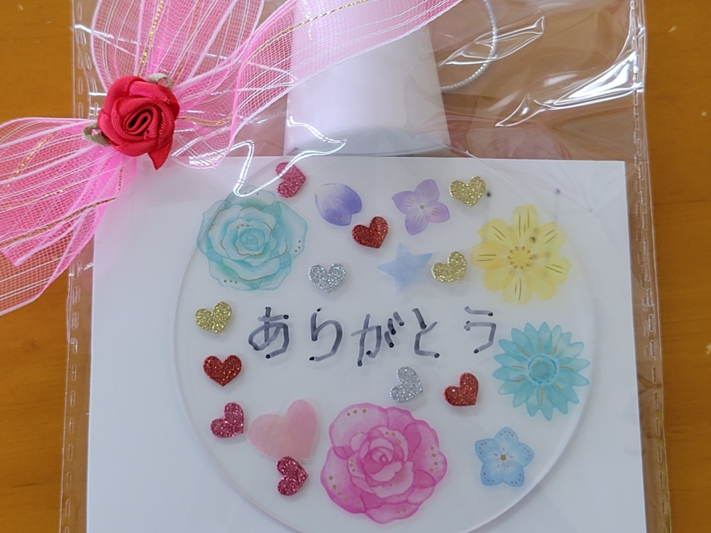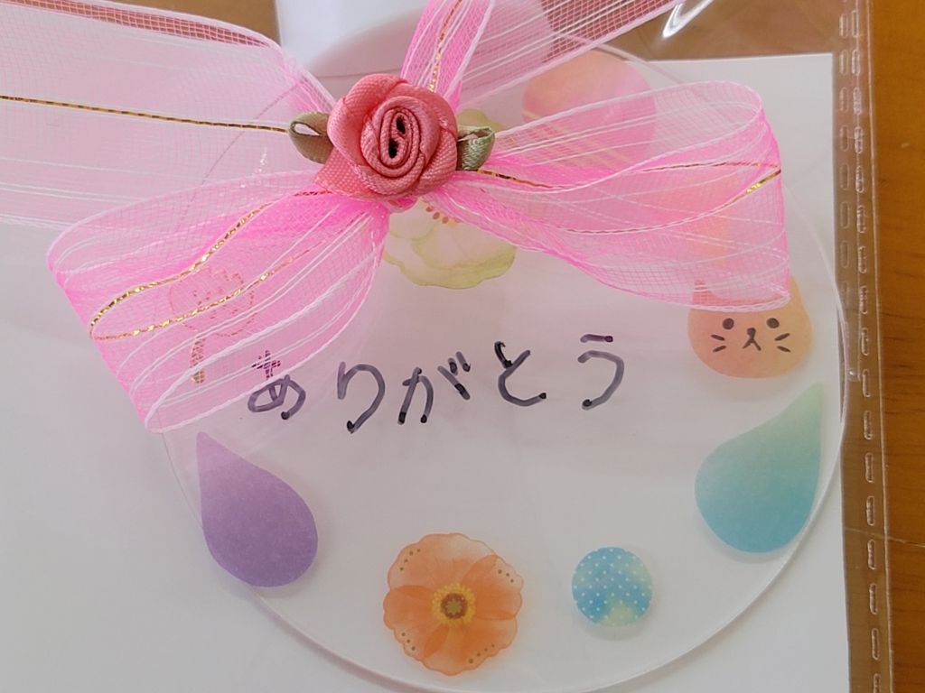 そして手本を見ながら、ありがとうの言葉が隠れないように飾りシールを貼っていきます🎵