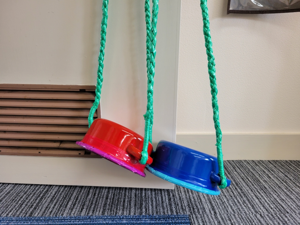 先生が、フルーツ缶詰を食べた後の缶を見て思い付きで手作りしてくれました。