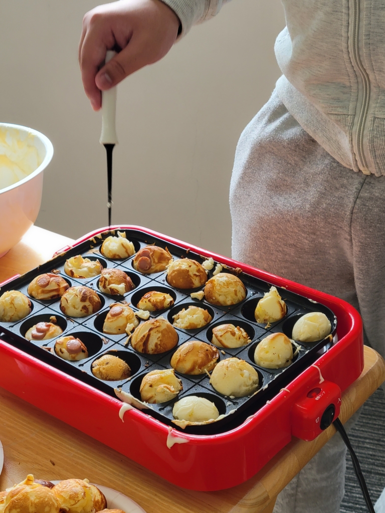 ベビーカステラ(淡路島ではピンス焼き)風で 中には、ウインナーやチーズが入っています。