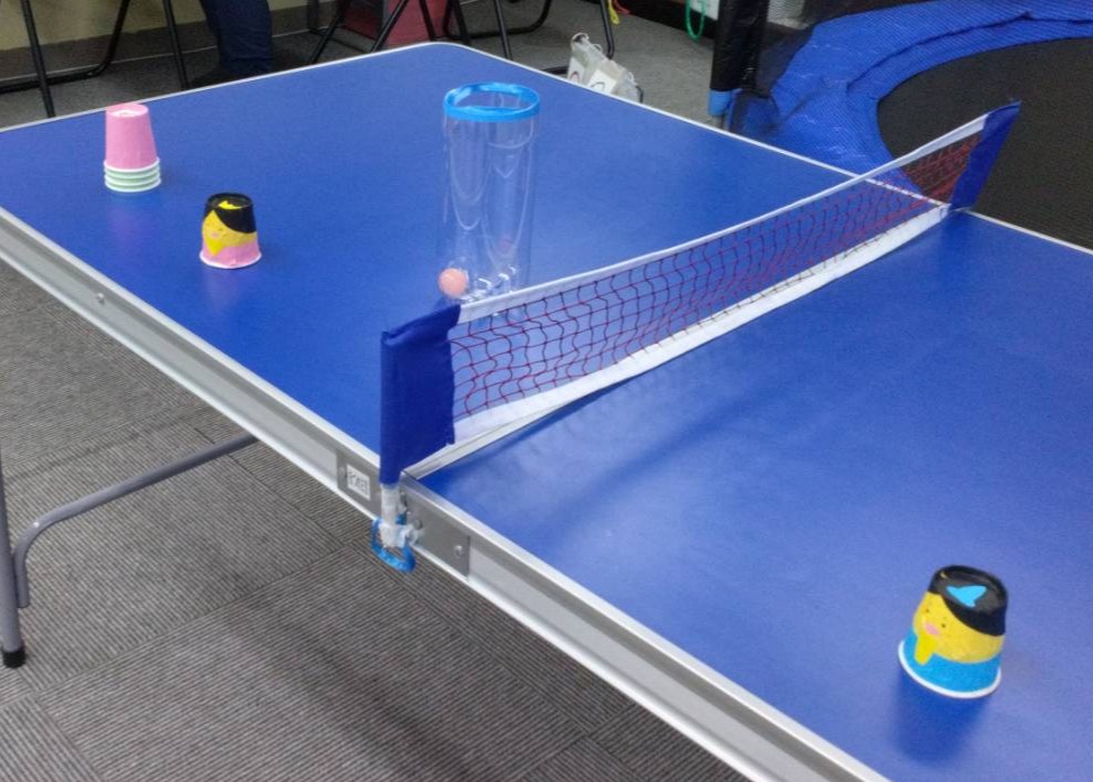 ピンポン玉を落とさないように、そーっと慎重に運ぶ子どもたち。でもリレー形式なのでスピードも大事!