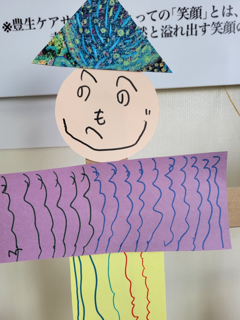 このように飾りました!っと映像を送ると、スゴイ! みんな上手にかかしを描いてるね!と、喜んで下さいました。