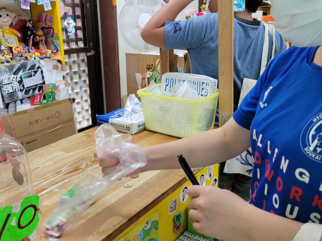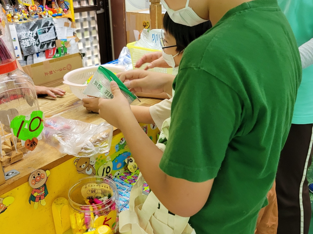 大きい学年は、買い物かごを教えています。