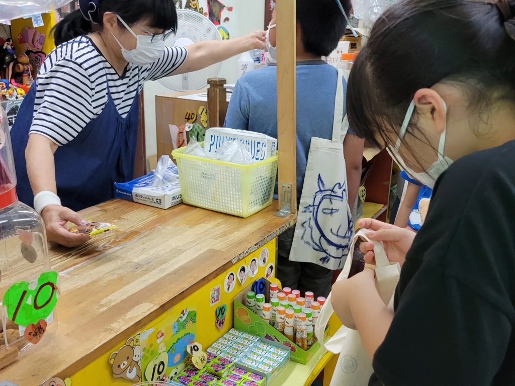 いつも行く駄菓子屋さんに、車で乗り付けました!