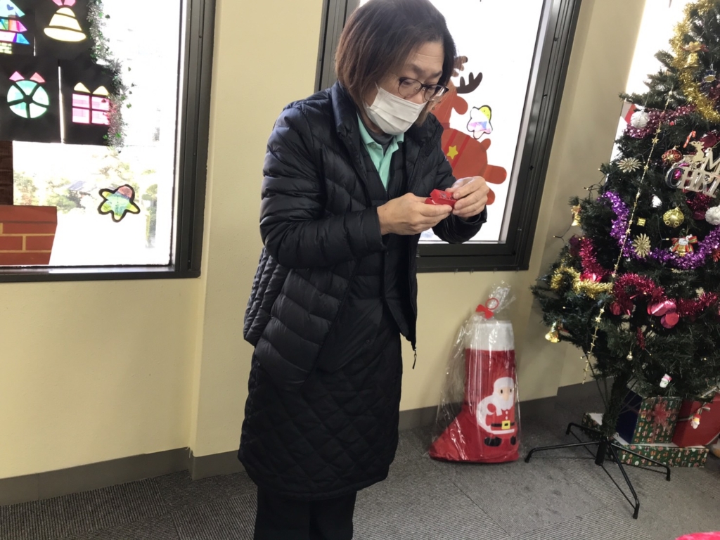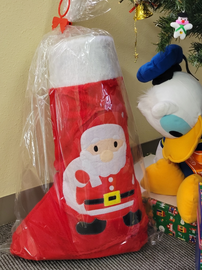 早くから会長さんに頂いていた大きなブーツの中には、たくさんのお菓子がありました。