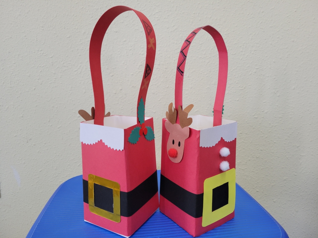 子どもたちは サンタ小物入れを 早速作り出しました。