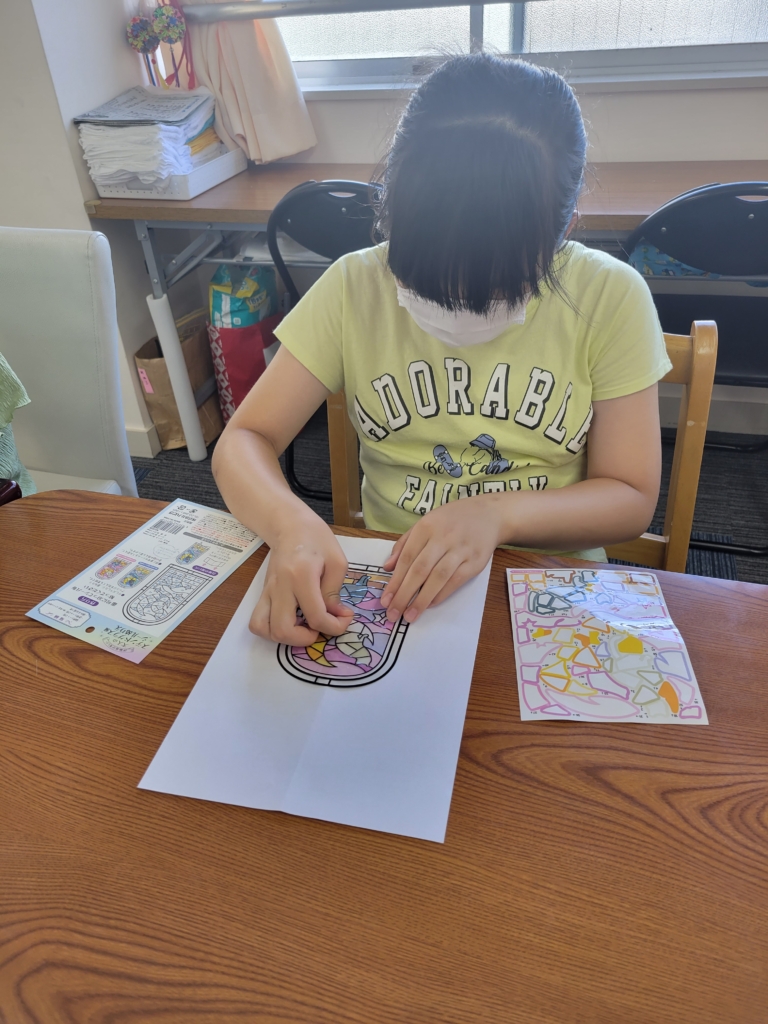いつも話好き動く事が好きな子ども達が、30分近くイスに座って黙々と作る姿に ビックリした以上に 『手伝って下さい』の言葉も少なく自分の力で作りあげる姿に 成長を感じる作品作りでした。