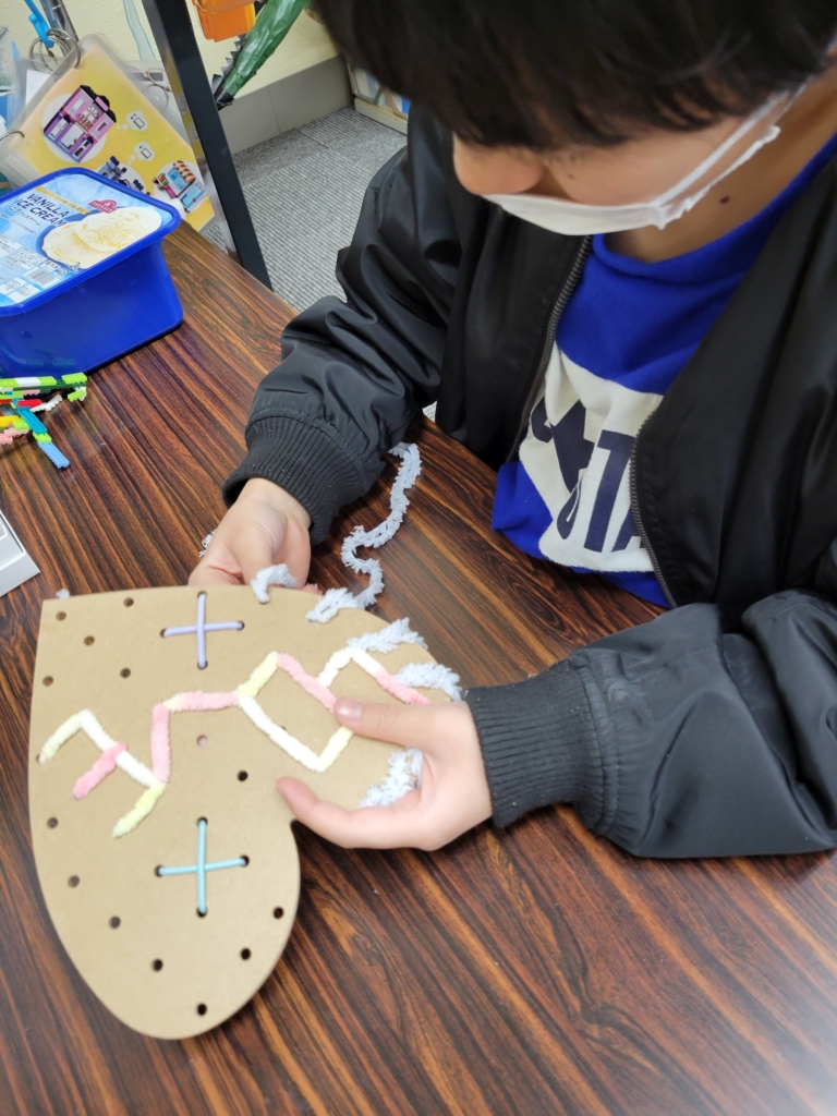 14日の今日、お家に持って帰りました! さっそく、チョコを自分で食べた人! 大好きなママにプレゼントした人! すてきな作品を玄関に飾りましたと連絡きました。