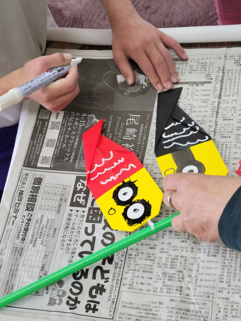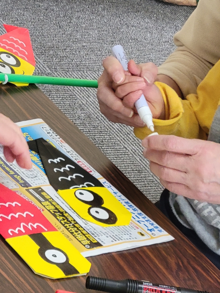 今年の鯉のぼりは… 2023 4/26 お知らせイベント子どもの作品 2023.04.26 2023.04.26 鯉のぼりの竿の棒とかざぐるまキッドをいただいていたので… ミニオンこいのぼりを作ってみました! 先日、海上自衛隊の絵を持っていった事務所にも、ミニオンこいのぼりをプレゼントしています。 5月5日まで、事務所に一緒に飾っているそうです🎵 お知らせイベント子どもの作品 よかったらシェアしてね! URL Copied! URL Copied! 美味しいイチゴ 梅雨に向けての飾り作り 関連記事 なぜ? ふくまろ? 2021.07.19 僕の誕生会は パンケーキ‼️ 2022.04.12 新しいゲーム 2021.07.09 工作:スイカのうちわ! 2023.07.31 マメを描きました 2024.05.18 お正月前の掃除はじめました 2021.12.10 味を感じて… 2023.04.12 就労に向けて… 2023.07.14