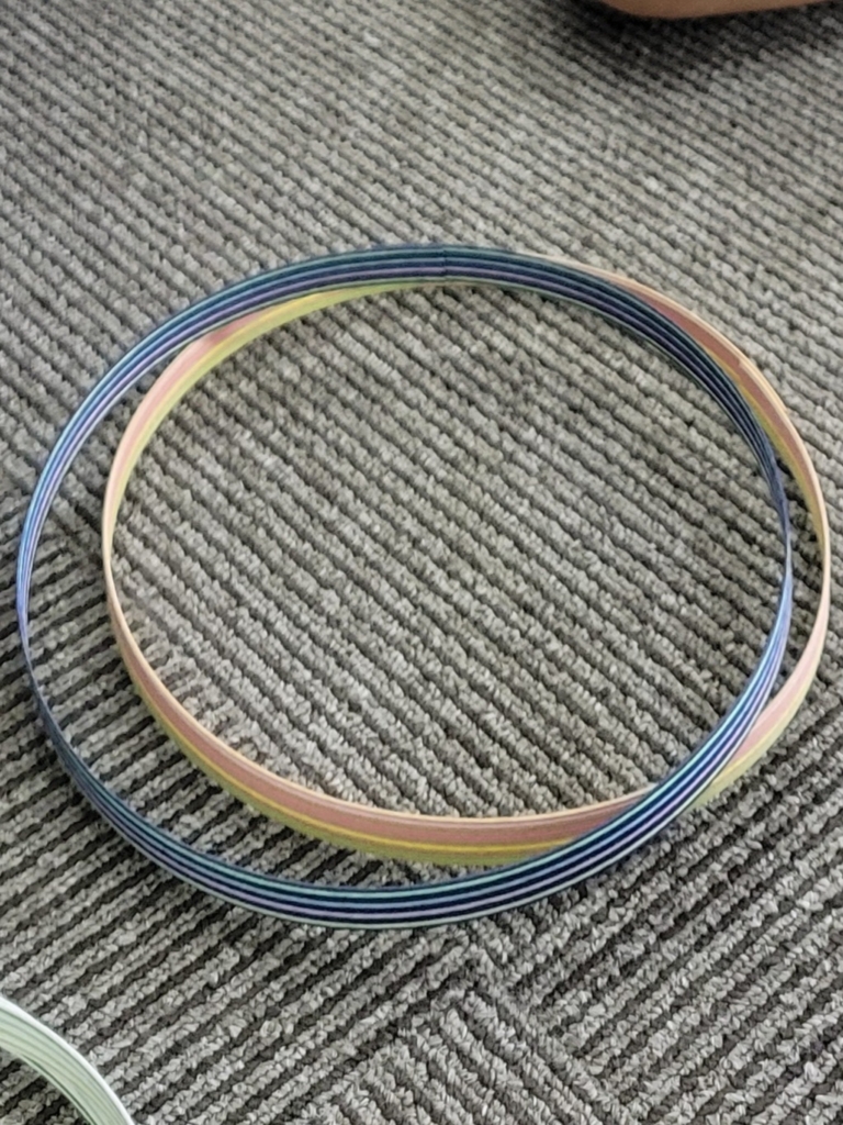 縦にしたテープを交互に使って丸い輪っかテープを編んで行きます。