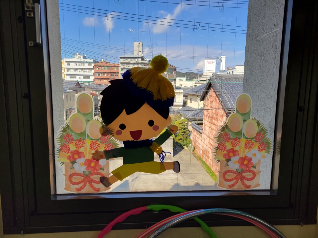 今週は、お正月飾りを作って持ち帰っています。金の扇子に飾る絵柄をぬり絵しましたが、『これ、何か知ってる?』絵を塗っても言葉には出ません。